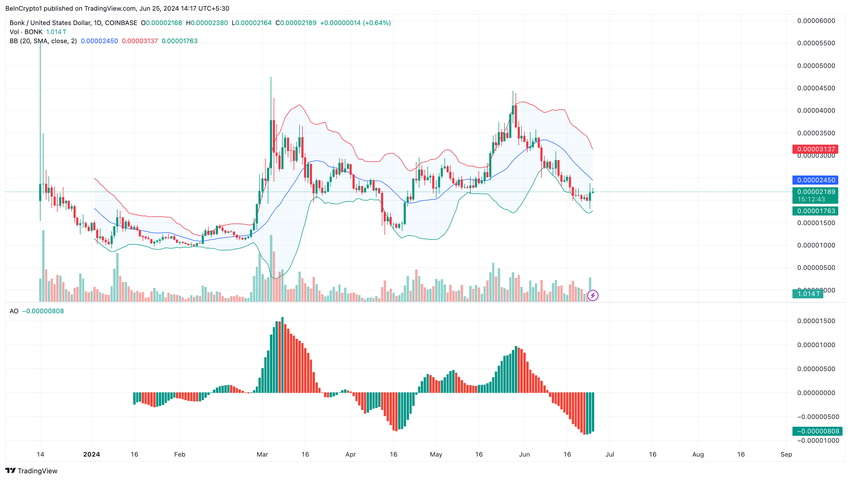Se l’AO dovesse salire lentamente in territorio positivo, la previsione di prezzo di BONK a 0,000025 dollari potrebbe essere convalidata.