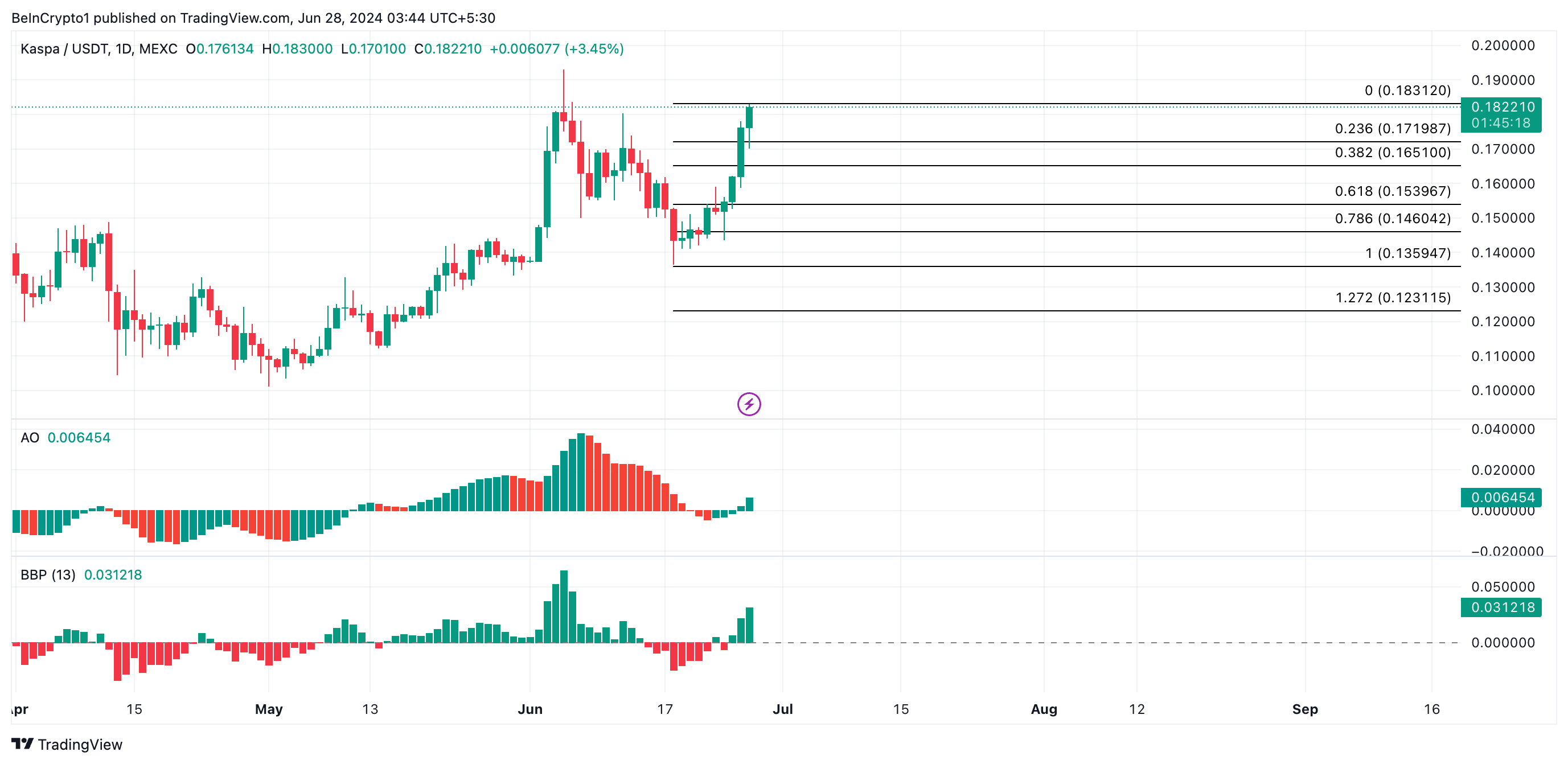 Se KAS mantiene la sua tendenza al rialzo, il suo prezzo si rialzerà oltre i 0,2 dollari.