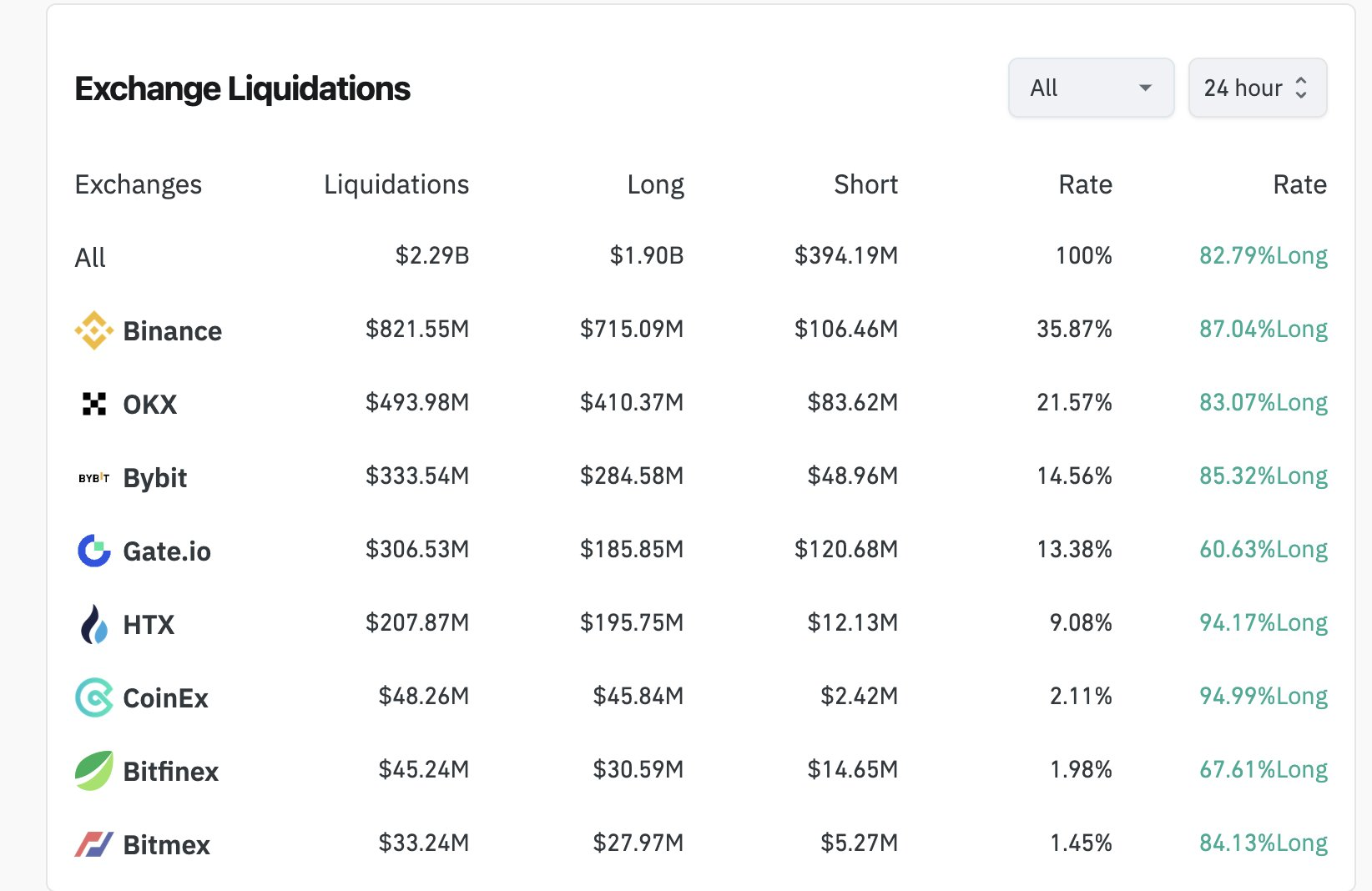 “Temo che oggi la liquidazione totale reale sia molto più di 2 miliardi di dollari, secondo la mia stima dovrebbe essere almeno intorno agli 8-10 miliardi. FYI, la liquidazione di 24 ore di Bybit da sola è stata di $2,1 miliardi. Le liquidazioni di 24 ore di Bybit registrate su Coinglass erano circa $333 milioni, tuttavia, queste non sono tutte le liquidazioni. Abbiamo una limitazione API su quante informazioni vengono inviate al secondo,” ha detto Zhou.