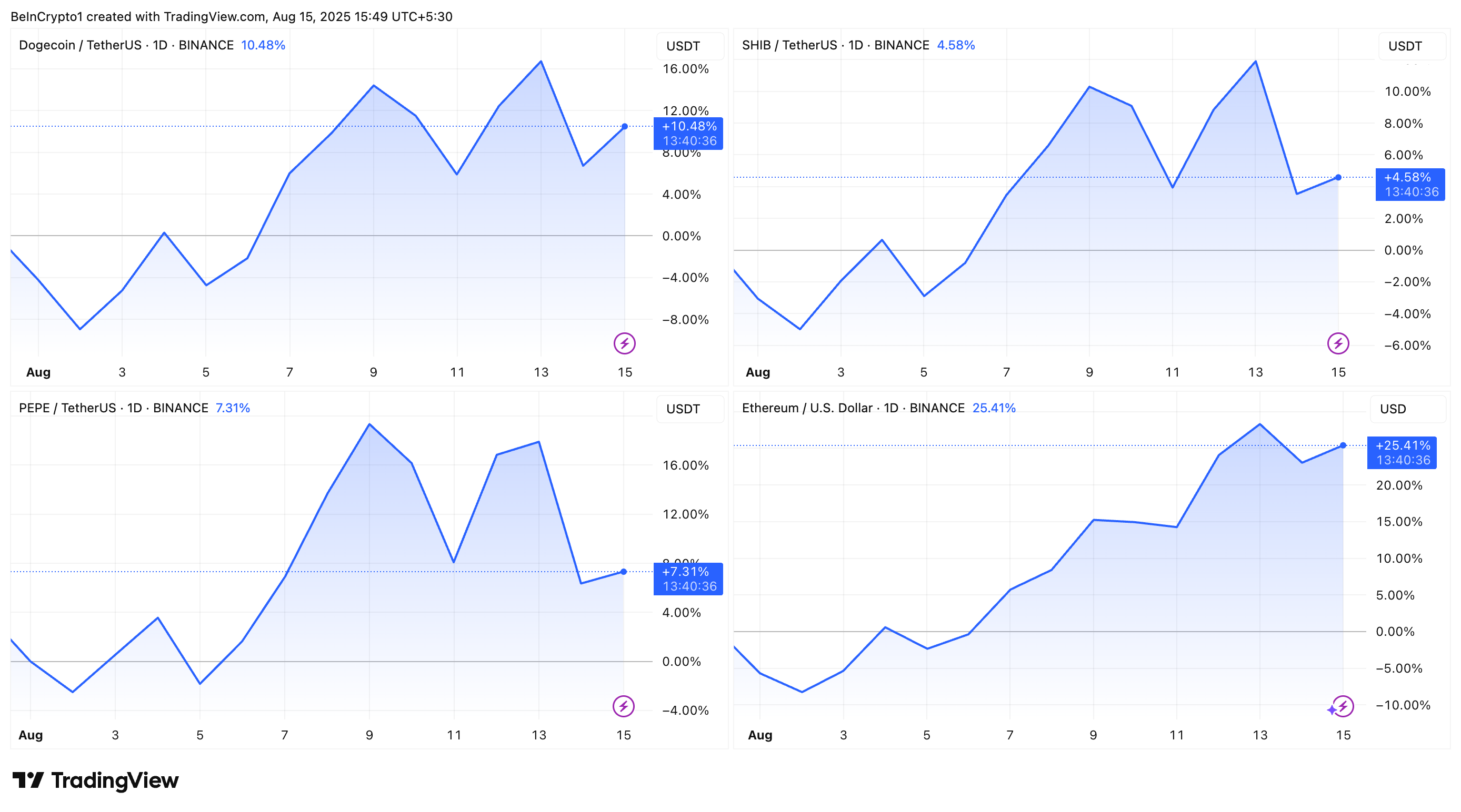Finora questo mese, Ethereum ha registrato un aumento del 25,41%. Nel frattempo, Dogecoin (DOGE) è aumentato del 10,48%, Shiba Inu (SHIB) del 4,58% e Pepe (PEPE) del 7,31%.