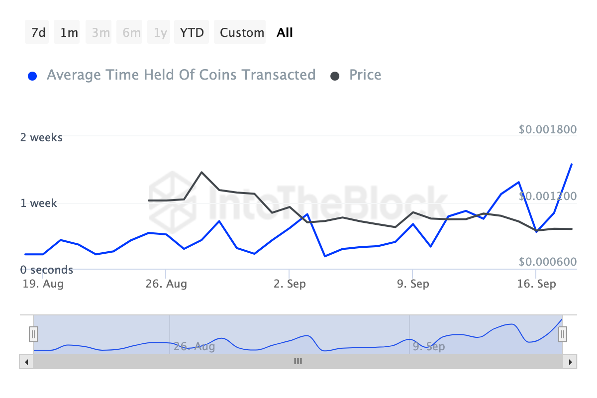 Inoltre, questo piccolo numero di detentori in profitto potrebbe rendere difficile per il prezzo di DOGS continuare ad apprezzarsi. È interessante notare che il tempo di detenzione delle monete ha rivelato che molti investitori nella criptovaluta non sono pronti a liquidare in perdita.