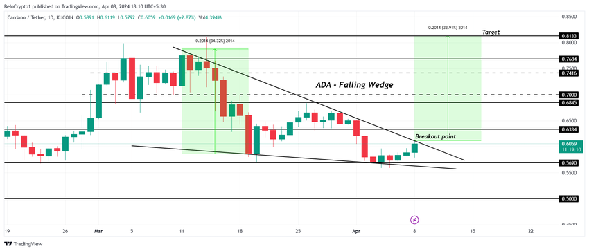 Sulla base di questo schema e del fatto che ADA è prossimo al breakout, il prezzo di Cardano probabilmente registrerà un aumento del 32,91%. Questo porterebbe la criptovaluta di terza generazione a 0,813 dollari.