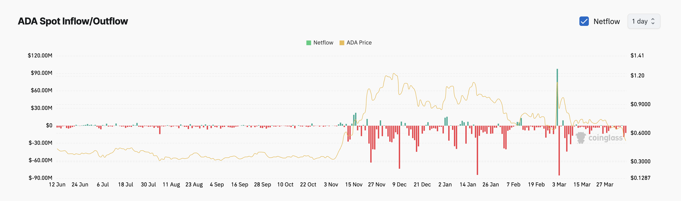 ADA Spot Inflow/Outflow. Fonte: Coinglass