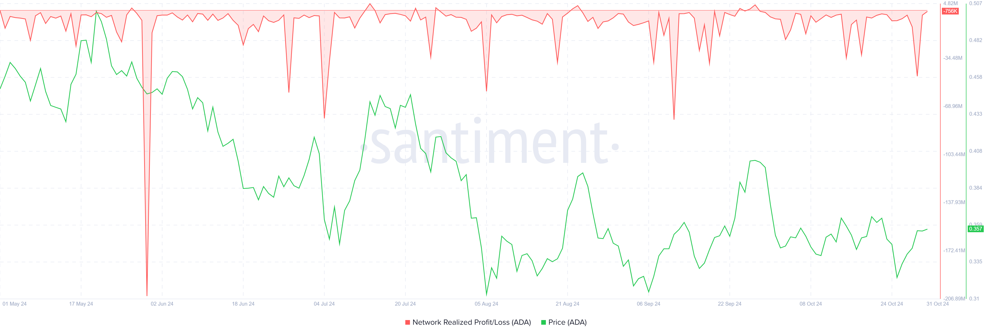 Con le perdite degli investitori in aumento, potrebbe esserci esitazione a impegnarsi attivamente nel mercato. Una riduzione della pressione di vendita potrebbe offrire un po’ di sollievo a ADA, ma potrebbe anche limitare l’interesse all’acquisto. Questo sentimento cauto potrebbe mantenere il comportamento del prezzo di Cardano limitato a un intervallo, riducendo le possibilità di un rally di breakout.