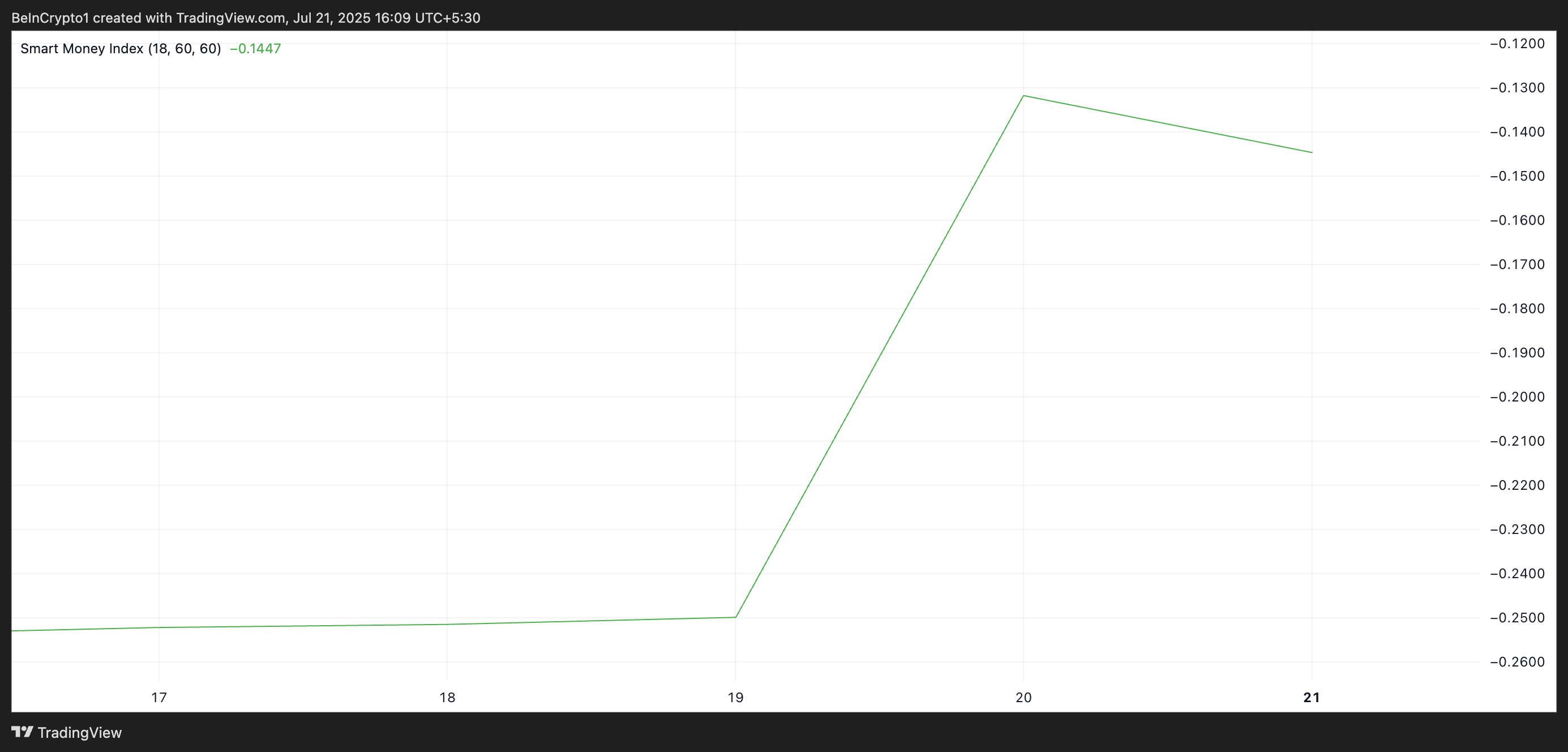 Smart money si riferisce al capitale controllato da investitori istituzionali o trader esperti che comprendono più a fondo le tendenze e i tempi di mercato. L’SMI traccia il comportamento di questi investitori analizzando i movimenti di prezzo intraday.