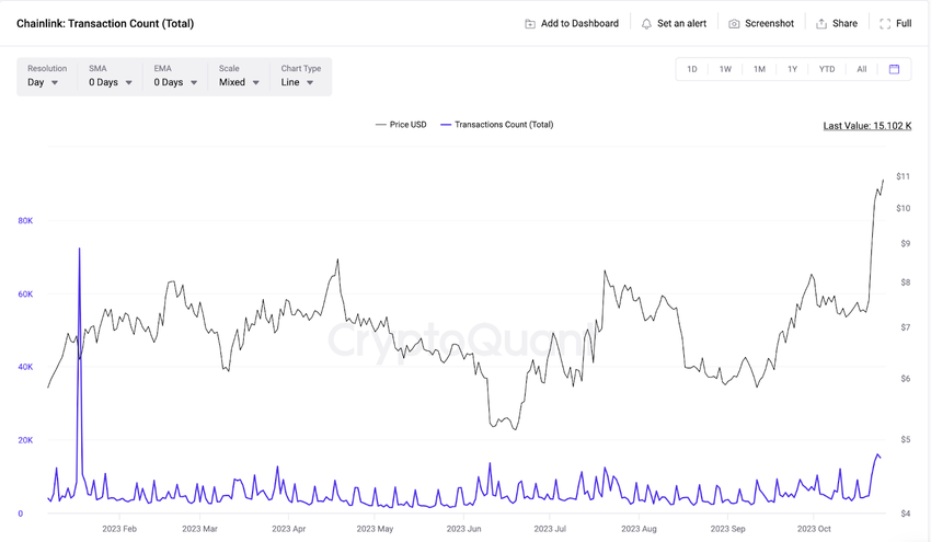 Le transazioni di Chainlink sono aumentate costantemente nel corso della settimana