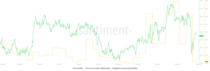La presenza di un tale sentimento negativo in concomitanza con un notevole calo del Dormant Circulation Supply dipinge un quadro da ribassista a neutrale per LINK.