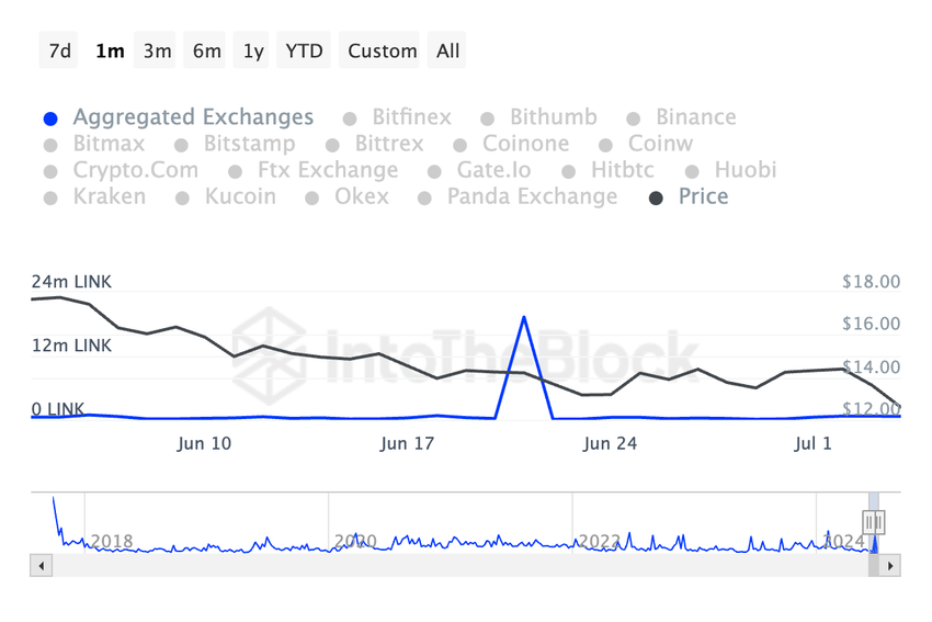 L’aumento dei flussi di exchange di LINK nello stesso periodo suggerisce che queste whale hanno gradualmente venduto le loro partecipazioni, da cui il continuo calo del prezzo. Negli ultimi 30 giorni, il volume di afflussi di LINK è aumentato del 29%.