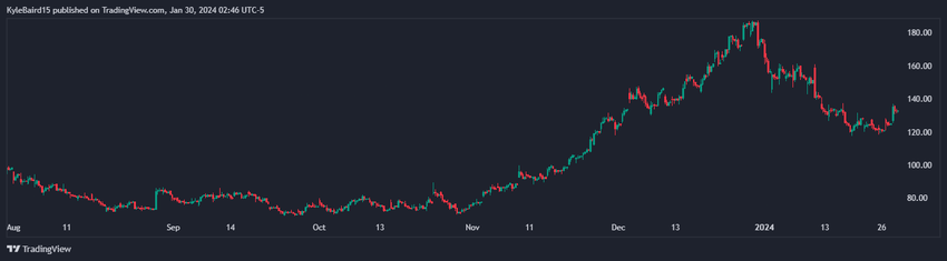 Tuttavia, diversi analisti prevedono un potenziale calo del prezzo delle azioni di Coinbase nei prossimi giorni. Il 23 gennaio, BeInCrypto ha rivelato che Kenneth Worthington, analista di JPMorgan, ha fissato un obiettivo di prezzo di 80 dollari per COIN, mentre l’attuale valore di scambio è di 132 dollari.
