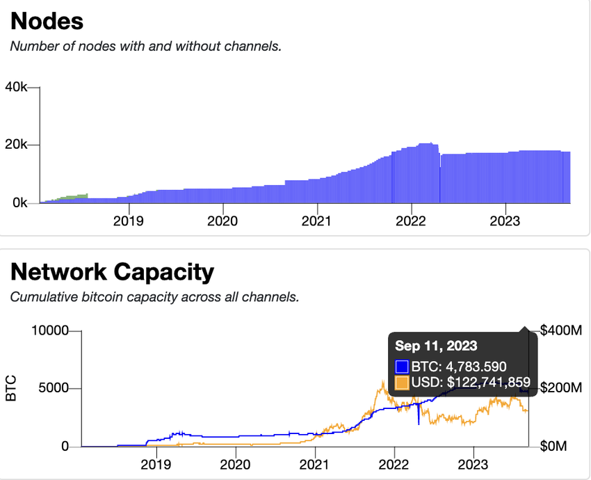 Mentre Coinbase deve ancora lanciare Bitcoin Lightning, il suo concorrente Binance ha integrato il servizio a luglio. All’11 settembre, la rete Bitcoin Lightning conta 17.669 nodi e una capacità di 4.783,590 Bitcoin (BTC).