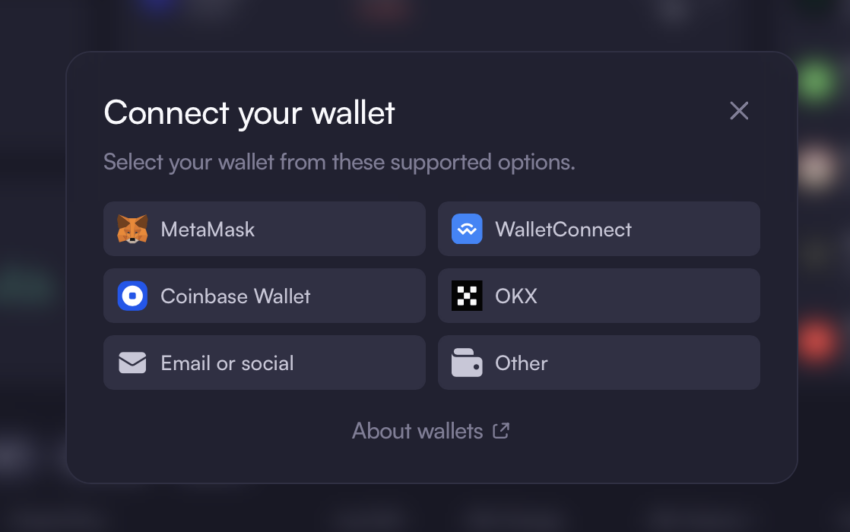 - Collega il tuo portafoglio o i social: fai clic sul pulsante “Connetti portafoglio” e seleziona il tipo di portafoglio. Seguire le istruzioni per completare la connessione. Assicurati che l’estensione del portafoglio o l’app siano aperti e pronti per l’interazione.