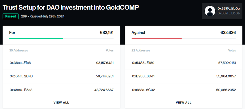 Una whale di criptovalute nota come “Humpy” ha sfruttato le sue ingenti proprietà per far passare una proposta che mira a dare ai titolari un rendimento aggiuntivo sui loro token COMP depositandoli in un caveau. Questa azione ha reindirizzato 499.000 COMP, del valore di circa 25 milioni di dollari, dai fondi di cassa di Compound a un caveau fruttifero controllato da lui e da un gruppo chiamato “Golden Boys”.
