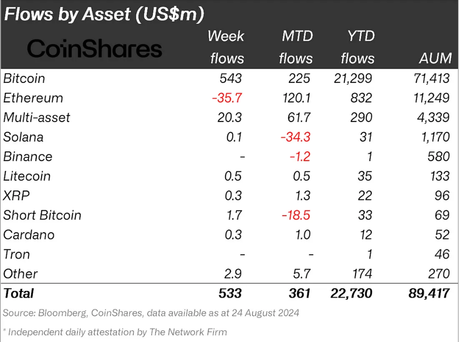Per tutto il mese di agosto, i grandi detentori di portafogli hanno costantemente ritirato i loro investimenti. Al 24 agosto, SOL ha registrato 34,3 milioni di dollari di deflussi, diventando l’asset crittografico meno favorito in quel periodo.