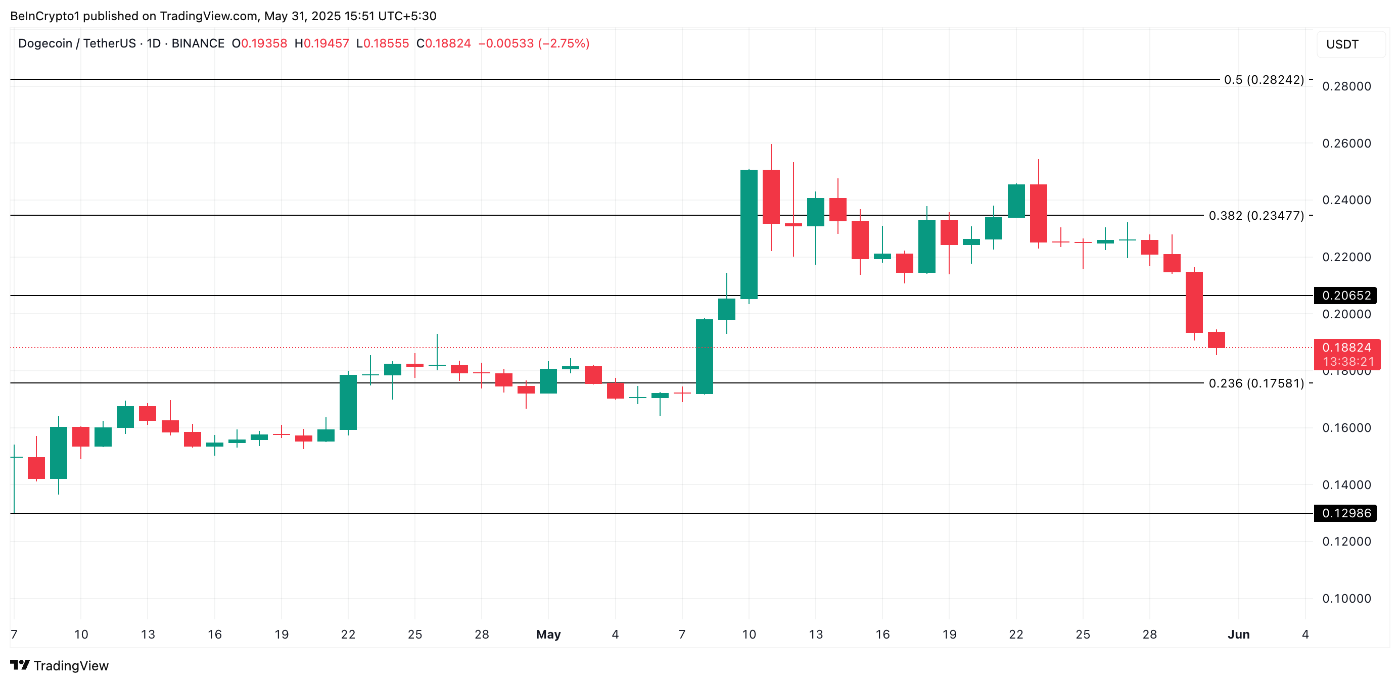 Tuttavia, se l’accumulo delle balene si ferma e le vendite si rafforzano, il valore di DOGE potrebbe scendere a $0,175.