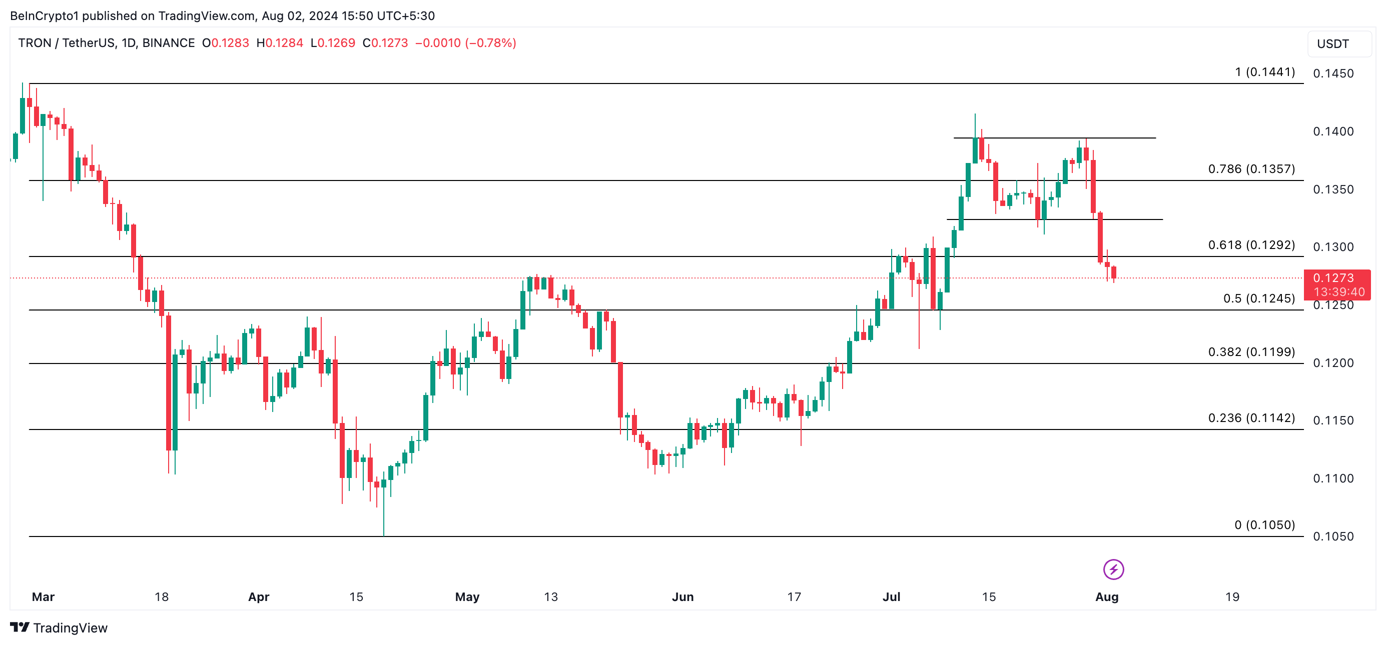 Se l’accumulo di whale persiste, può innescare una domanda più diffusa per la moneta. Questo potrebbe portare a un rialzo dei prezzi, che potrebbe far scambiare TRX a 0,13 dollari.