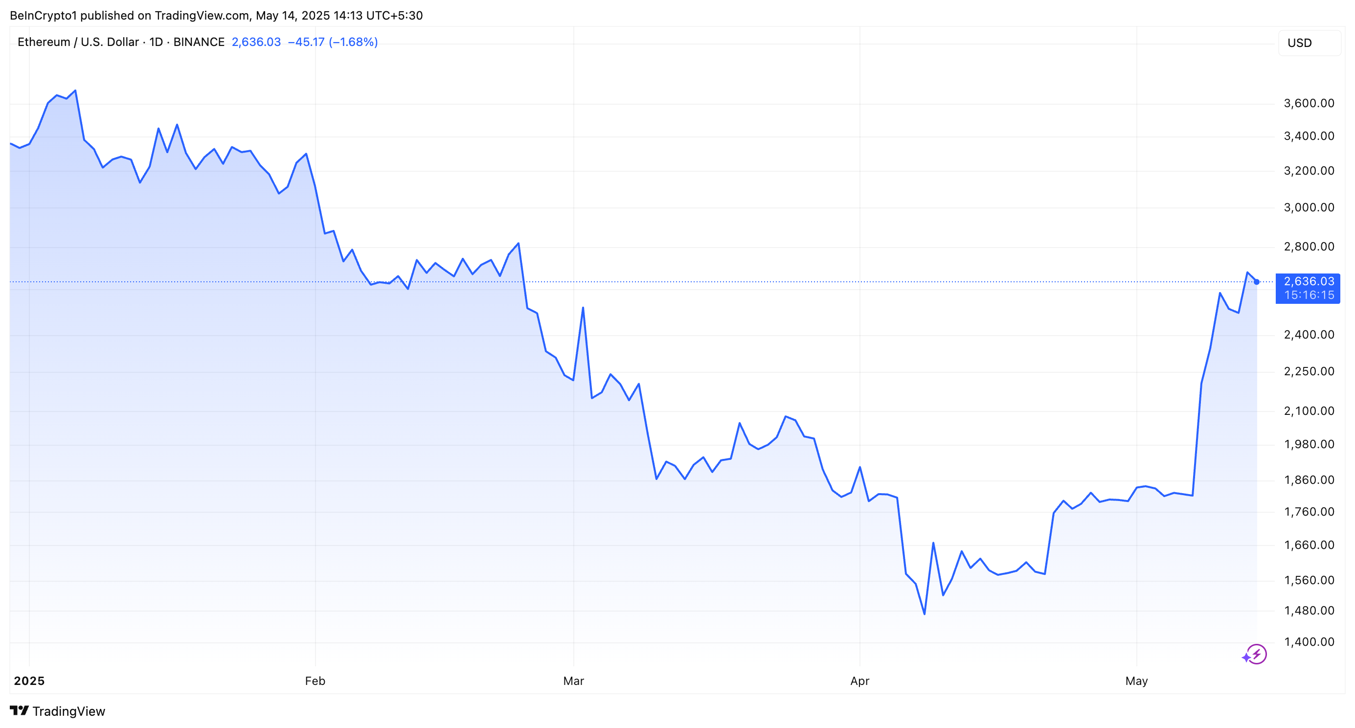 I dati di BeInCrypto hanno mostrato che il valore di ETH è aumentato del 43,1% nell’ultima settimana. Al momento della scrittura, era scambiato a $2.636, rappresentando guadagni giornalieri del 7,3%.