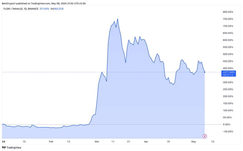 La scorsa settimana, ad esempio, le mosse strategiche includevano un pesante investimento di 1 milione di dollari in FLOKI, amplificando la visibilità e il volume di scambio della moneta. Un afflusso di capitale così significativo ha rafforzato la posizione di FLOKI sul mercato e ha contribuito al suo apprezzamento anno su anno del 354,41%.