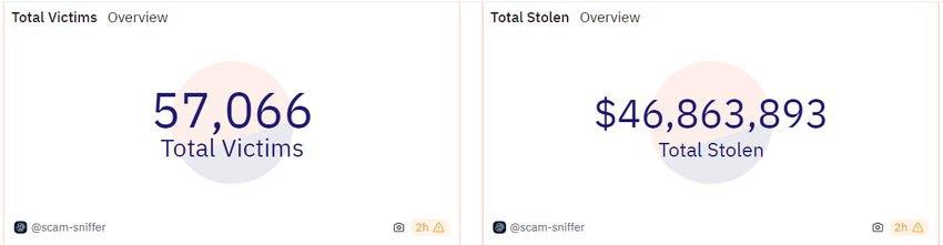 Secondo i risultati di Scam Sniffer, le vittime, per un totale di 57.066, sono state intrappolate in truffe di phishing di criptovalute durante il mese. Gli aggressori sono riusciti a sottrarre 46,86 milioni di dollari a questi investitori in criptovalute, mascherandosi da entità legittime su varie piattaforme di social media, includendo X (ex Twitter).