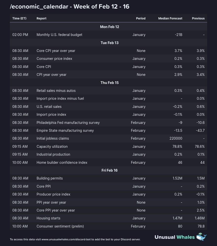 L’outlet di macroeconomia The Kobeissi Letter ha elencato i principali eventi economici degli Stati Uniti per la settimana che inizia il 12 febbraio. La lista segue un fine settimana di guadagni per il mercato delle criptovalute che si stanno avvicinando a livelli alti dei 2.000 miliardi di dollari di capitalizzazione di mercato totale.