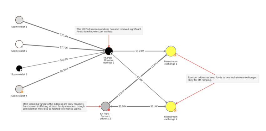 Un recente rapporto di Chainalysis riporta che i due indirizzi dei portafogli di riscatto sono collegati a una società cinese di facciata appartenente a una banda di macellai di maiali che opera a KK Park.
