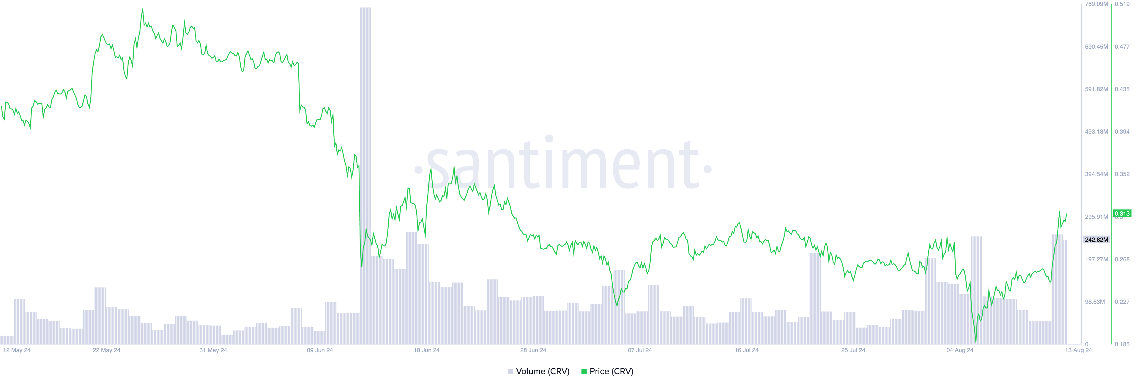 SponsoredL’aumento del volume di scambi di CRV nelle ultime 24 ore indica che il suo aumento di prezzo a due cifre nello stesso periodo è sostenuto da un forte interesse del mercato per il token DeFi.
