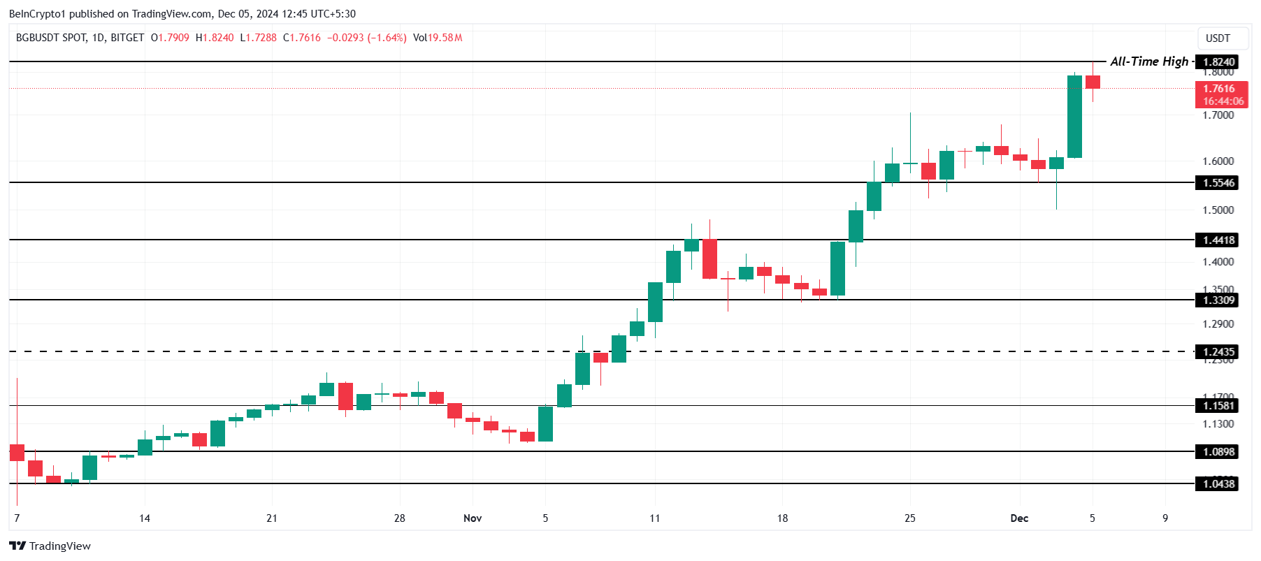 Tuttavia, se BGB non riesce a superare il massimo di 1.82 USD, potrebbe vedere un ritracciamento verso il livello di supporto di 1.55 USD. Un fallimento nel mantenersi sopra questa resistenza invaliderebbe la prospettiva rialzista, e potrebbe seguire una correzione. I partecipanti al mercato stanno monitorando attentamente questi livelli per segnali di inversione di tendenza.