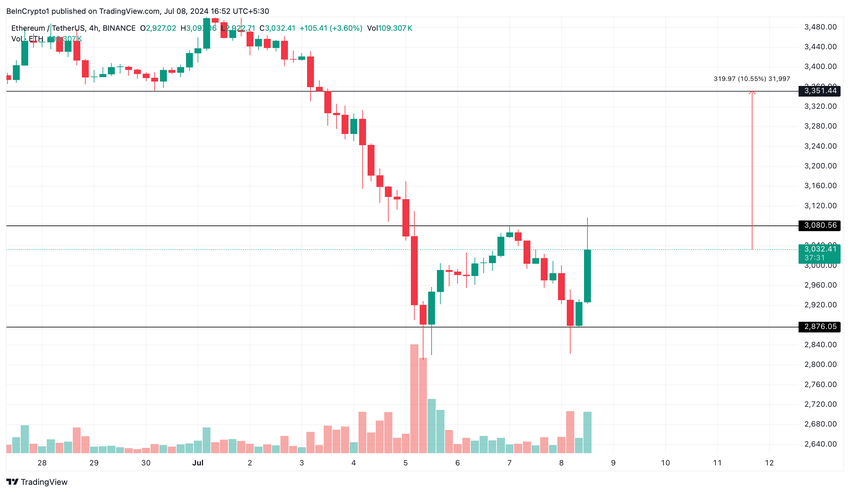 Se Ethereum riuscirà a superare la resistenza a 3.080 dollari, potrebbe salire a 3.350 dollari. Al contrario, la mancata rottura di questa resistenza potrebbe portare a un consolidamento dei prezzi nell’intervallo tra 2.876 e 3.080 dollari.