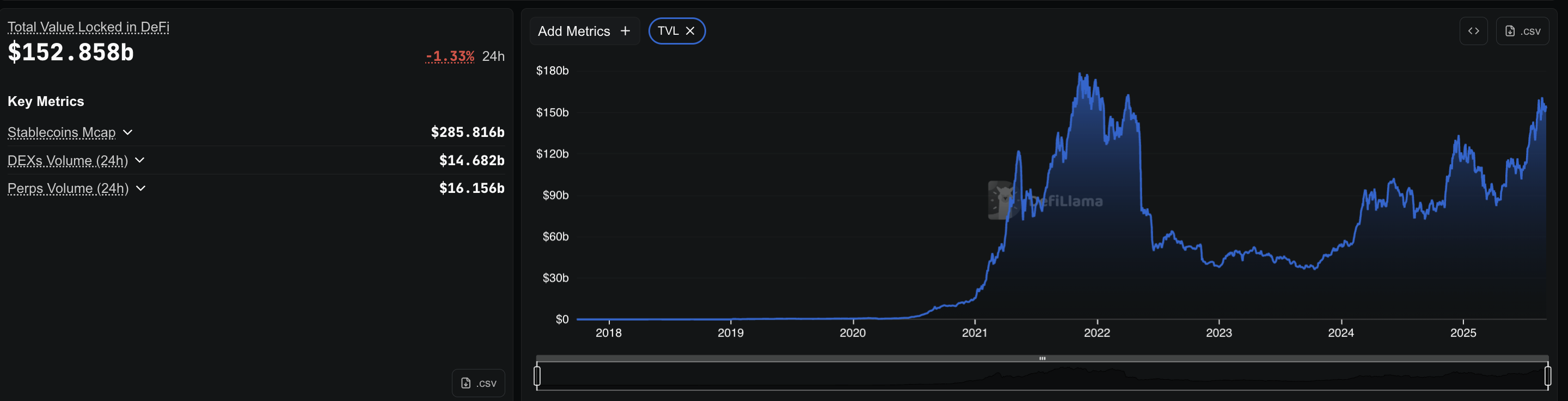 Al momento della pubblicazione, il valore totale bloccato (TVL) nella DeFi era di circa $152 miliardi, con quasi $49 miliardi presi in prestito attraverso i protocolli. Con un’ipotesi di utilizzo del 40%, i pool di prestito avrebbero bisogno di circa $123 miliardi di depositi per supportare $49 miliardi presi in prestito. Questo sarebbe circa l’81% dei $153 miliardi del TVL totale, ma questa è solo una stima.