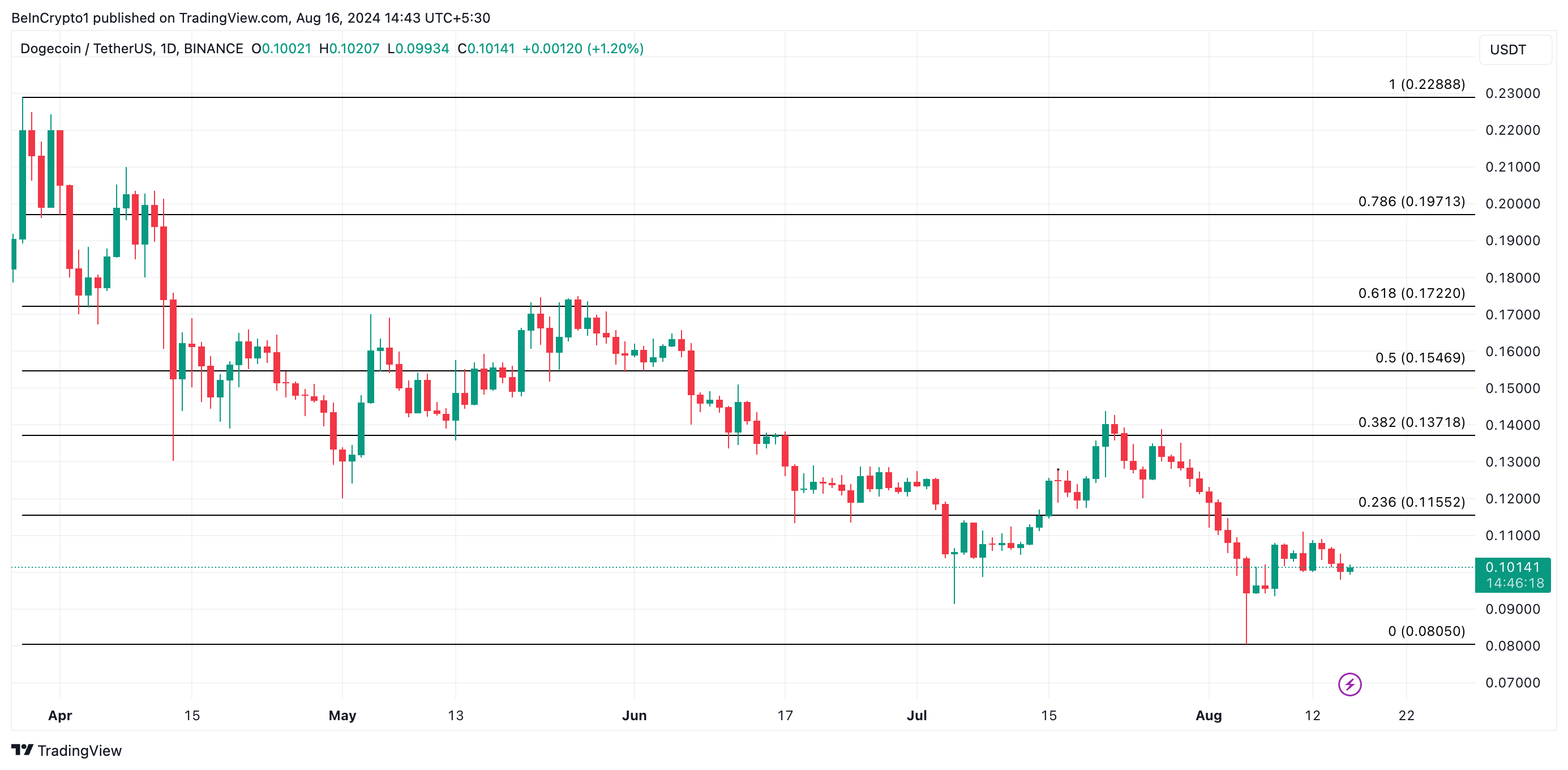 Se la pressione di acquisto da parte delle whale di DOGE continua a diminuire, il prezzo potrebbe scendere a 0,08 dollari, segnando un calo del 20% rispetto al valore attuale. L’ultima volta che il memecoin è stato visto a questo livello è stato il 5 agosto, quando il mercato delle criptovalute ha registrato oltre 1 miliardo di dollari di liquidazioni. Prima di allora, DOGE era sceso a questo livello a febbraio.