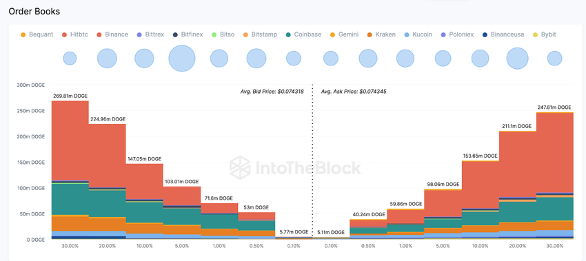 Oltre alla crescente domanda di investitoribalenieri, gli ordini di acquisto sul mercato al dettaglio di Dogecoin hanno ora superato l’offerta nei mercati spot. Dai dati aggregati dei registri degli ordini di 10 piattaformadiscambio, includendo Binance e Coinbase, i rialzisti hanno piazzato ordini attivi per acquistare 872.000 DOGE ai prezzi attuali. Nel frattempo, i trader hanno messo in vendita solo un totale di 810 milioni di DOGE.