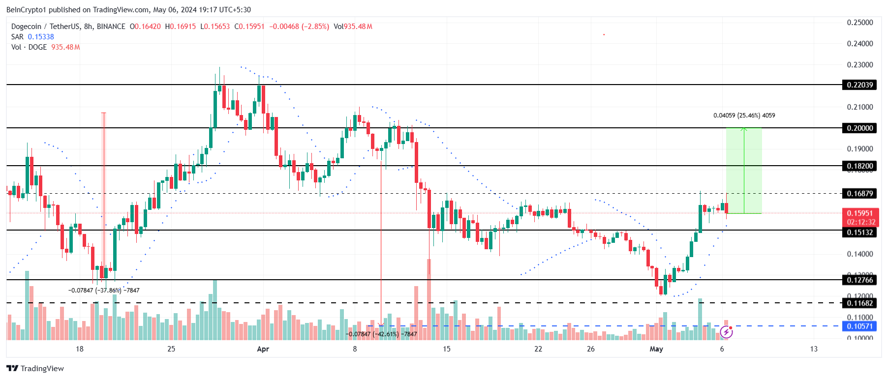 Sebbene il leader delle memecoin sia bloccato sotto la barriera di $ 0,16, potrebbe essere cancellato.