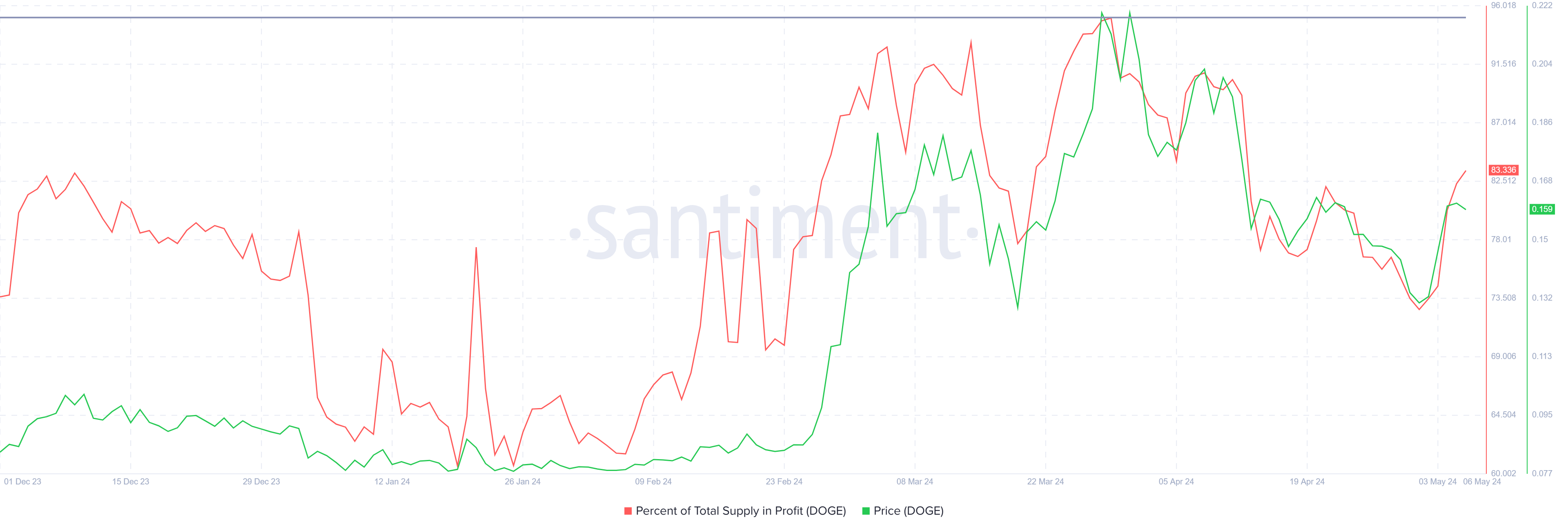 Questo aumento potrebbe arrivare presto poiché, nonostante la recente ripresa, il prezzo di Dogecoin ha ancora notevoli margini di crescita. Dell’offerta circolante totale di DOGE, solo l’83% è in profitto.