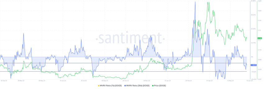Questo è chiarito dal rapporto tra valore di mercato e valore realizzato (MVRV), che in realtà favorisce le whale. Il rapporto MVRV misura i guadagni e le perdite degli investitori. Il MVRV a 30 giorni di Dogecoin, pari a -7,4%, indica una redditività che potenzialmente porta all’accumulo.