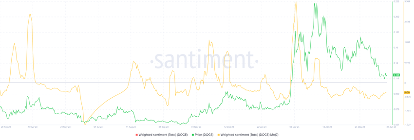 Inoltre, gli investitori di DOGE non sono stati particolarmente ottimisti. Il sentimento ponderato è rimasto negativo per quasi tre mesi, riflettendo un senso prevalente di cautela e pessimismo tra i partecipanti al mercato.