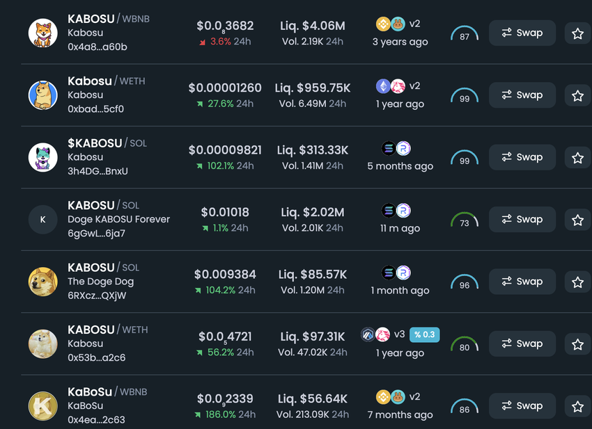 Allo stesso tempo, i dati di DexTools mostrano che varie meme coin a tema Kabosu sono aumentate di valore. Alcuni hanno visto i loro valori aumentare di oltre il 186%.