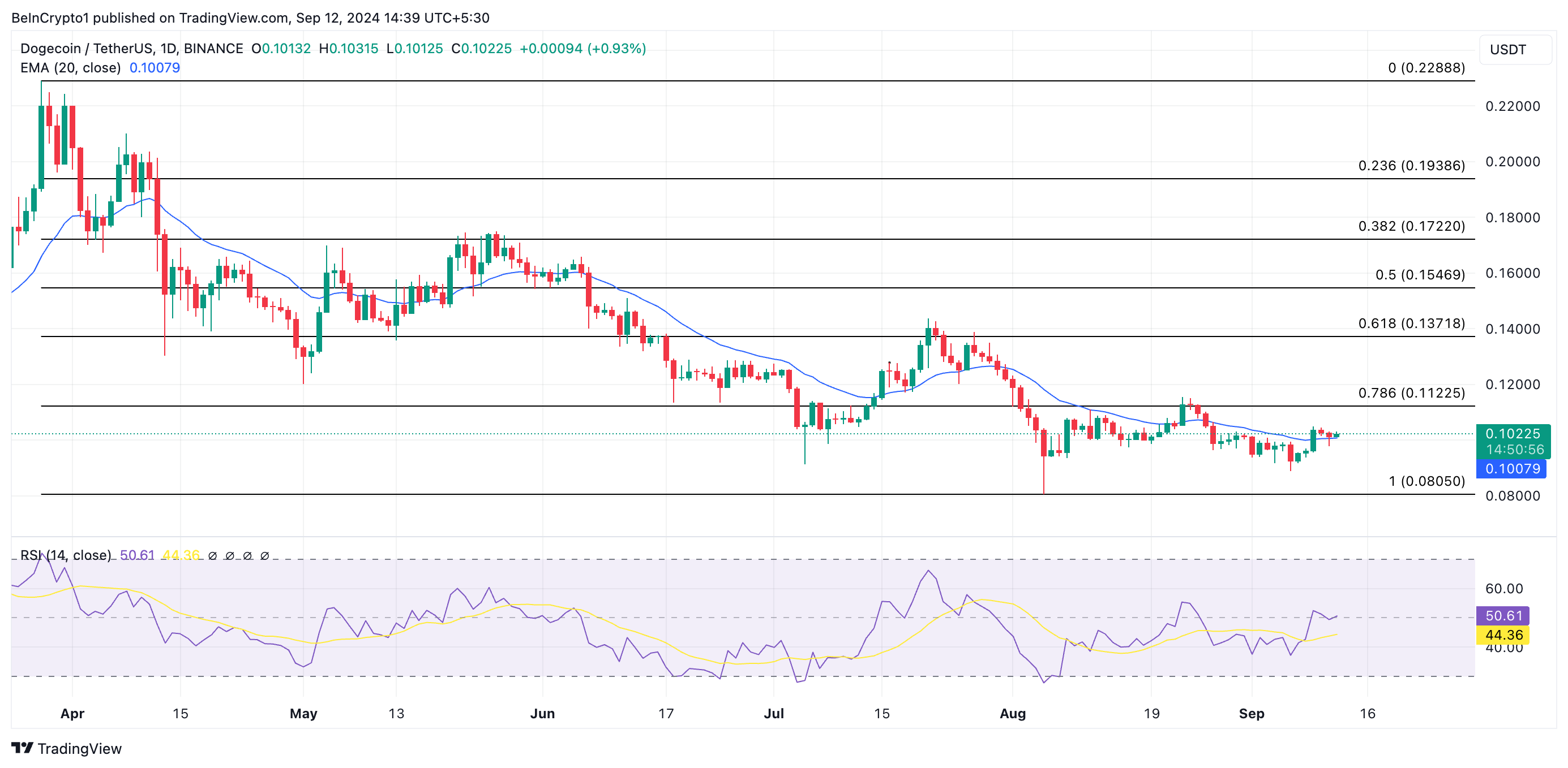 Inoltre, l’indice di forza relativa (RSI) della criptovaluta meme è a 50,61 al momento della stampa, segnalando un equilibrio relativo tra pressioni di acquisto e di offerta. Se l’attività di acquisto prende slancio, il test sarà riuscito e Dogecoin potrebbe continuare il suo trend rialzista fino a scambiarsi a 0,13 USD.