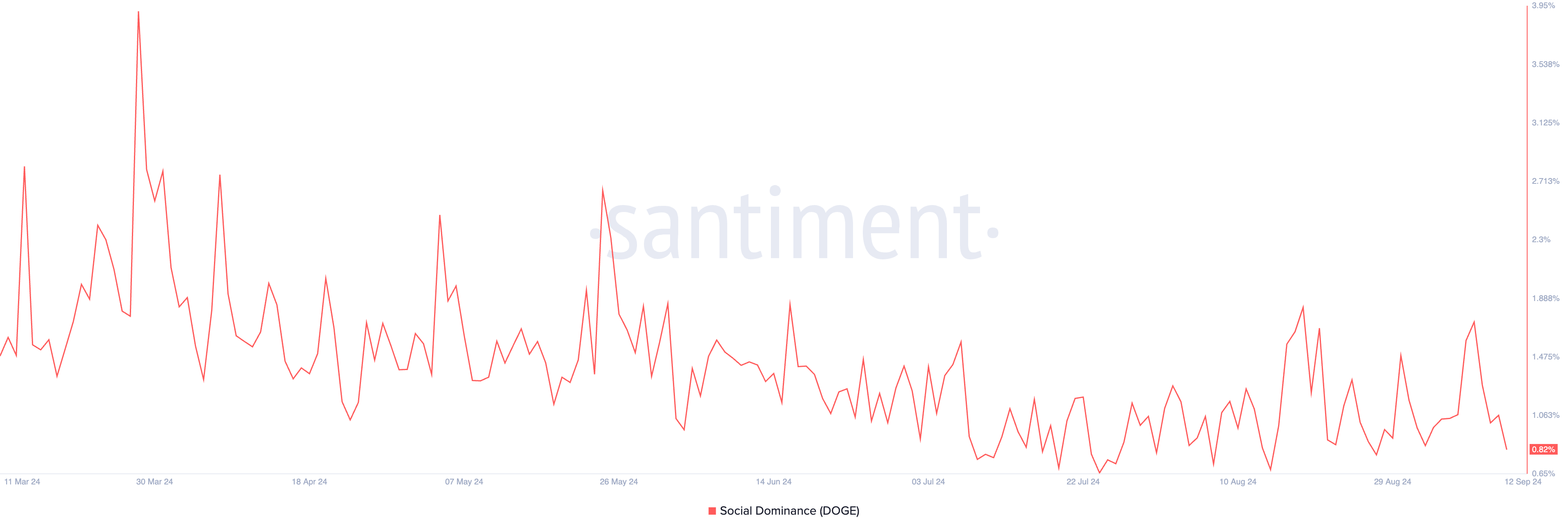 SponsoredQuando la dominanza sociale di un asset cala, viene discusso meno frequentemente sulle piattaforme di social media. Il calo della dominanza sociale di DOGE suggerisce un interesse o un entusiasmo ridotto per la criptovaluta meme nonostante il post di Musk.