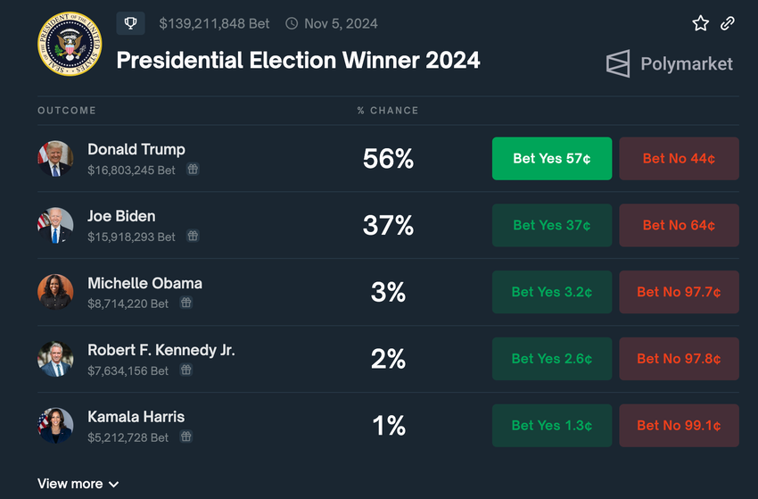 Secondo Polymarket, una popolare piattaforma di previsione basata sulle criptovalute, Donald Trump ha il 56% di possibilità di vincere le elezioni, rispetto al 37% di Biden. Con il sostegno dei principali attori e la promessa di creare un ambiente normativo più favorevole, il suo potenziale ritorno in carica potrebbe avere un impatto significativo sull’intero settore.