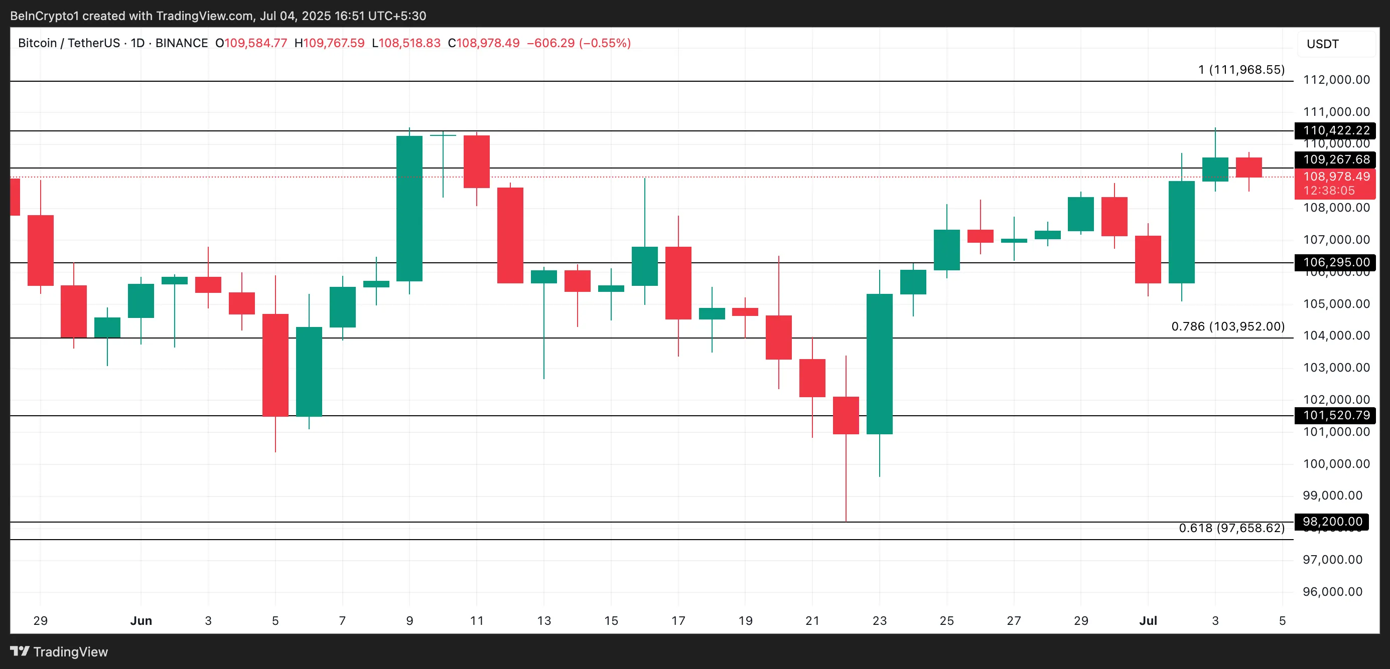 Al contrario, se le balene optano per mantenere e il sentimento generale del mercato diventasse rialzista, la moneta potrebbe trovare un nuovo slancio verso l’alto. Una rottura decisiva sopra $109.267 potrebbe aprire la strada a un rally verso il livello di $110.422.