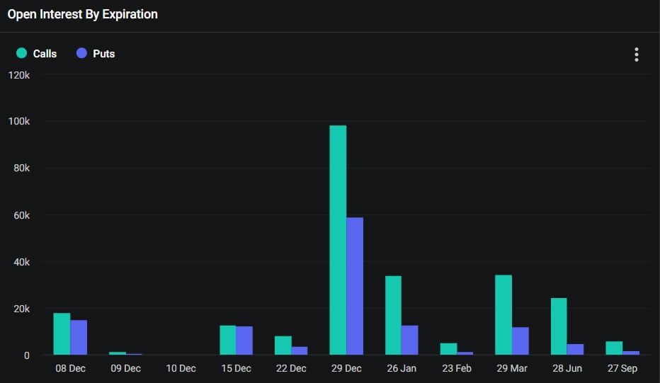Il 7 dicembre, Greeks Live ha notato che dopo la consegna della scorsa settimana, la quota di opzioni Bitcoin di dicembre era superiore al 50%. Ma con l’avanzata del mercato questa settimana, la quota di opzioni mensili è scesa di nuovo sotto il 50%.