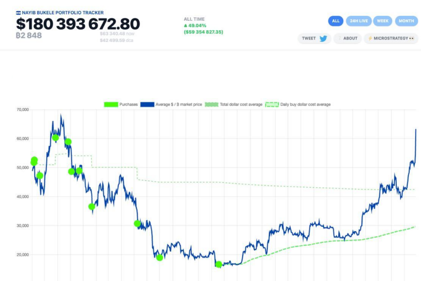 Le disponibilità totali di El Salvador in Bitcoin hanno superato i 60 milioni di dollari in seguito all’impennata del prezzo della criptovaluta.