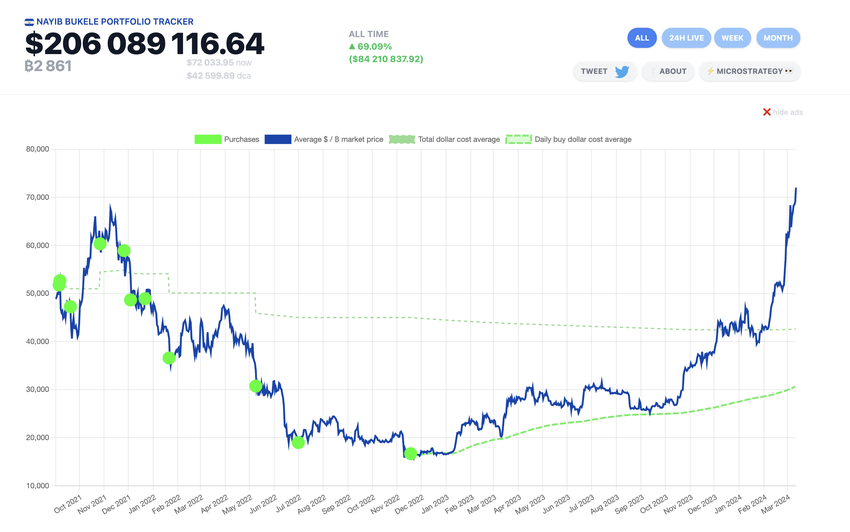 Dal 2021, El Salvador ha acquistato in modo aggressivo Bitcoin, acquistando un totale di 2.861 BTC a un prezzo medio di 42.599 dollari ciascuno. Di conseguenza, questi asset hanno ora un valore di oltre 206 milioni di dollari, con un aumento significativo del 69,09% del valore del portafoglio. È importante notare che il profitto del Paese non deriva solo dall’apprezzamento del mercato. Il profitto deriva anche da flussi di reddito innovativi direttamente legati al Bitcoin.