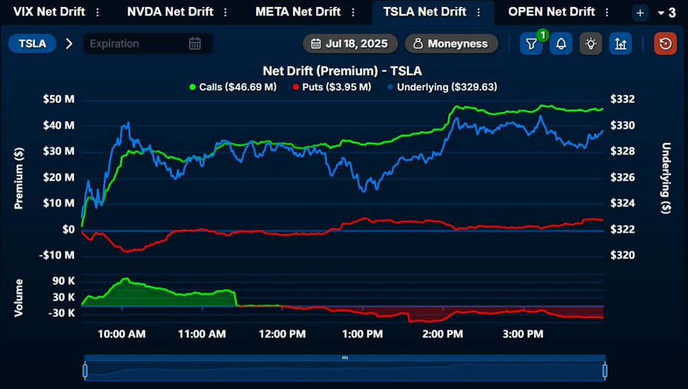 I trader di opzioni stanno già contribuendo, con oltre $47 milioni in opzioni call (acquisto) nette piazzate su TSLA solo venerdì 18 luglio.