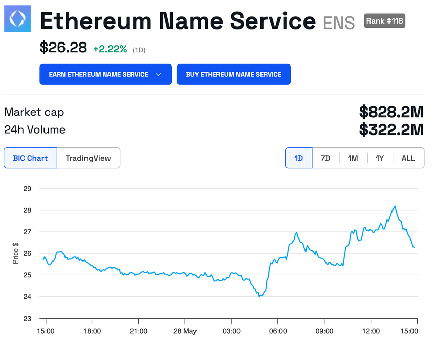 A seguito della notizia, il token ENS è salito del 2,2%, scambiando a 26,28$ al momento della scrittura. La migrazione Layer-2 può aumentare significativamente la posizione di mercato di Ethereum Name Service: gli sviluppatori beneficeranno della flessibilità del nuovo design del registro, mentre gli utenti godranno di prestazioni migliorate e costi inferiori.