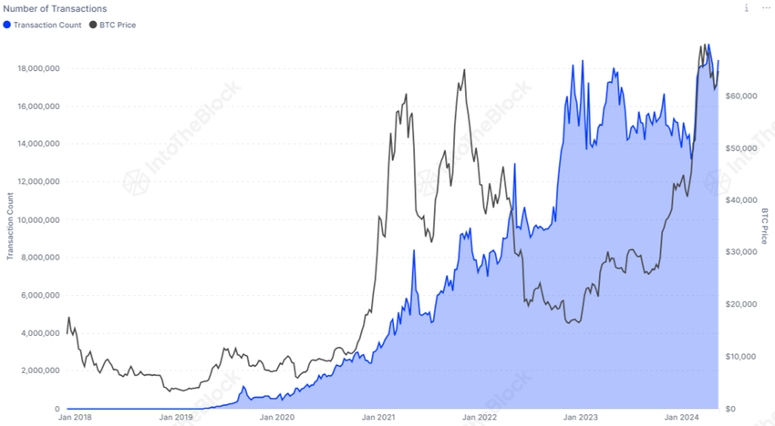 Inoltre, non c’è alcun segno che questa crescita stia rallentando presto. Il numero di transazioni USDT è aumentato significativamente dall’inizio dell’anno e si sta avvicinando a nuovi massimi.