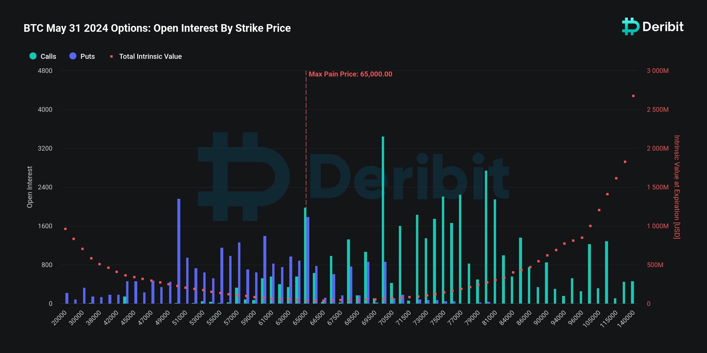 Il valore nozionale delle opzioni BTC in scadenza oggi è di 4,65 miliardi di dollari. Secondo i dati di Deribit, queste 261.390 opzioni Bitcoin in scadenza hanno un rapporto put-to-call pari a 0,6. Questo rapporto suggerisce una prevalenza di acquisto di opzioni. Questo rapporto suggerisce una prevalenza delle opzioni di acquisto (call) rispetto a quelle di vendita (put).