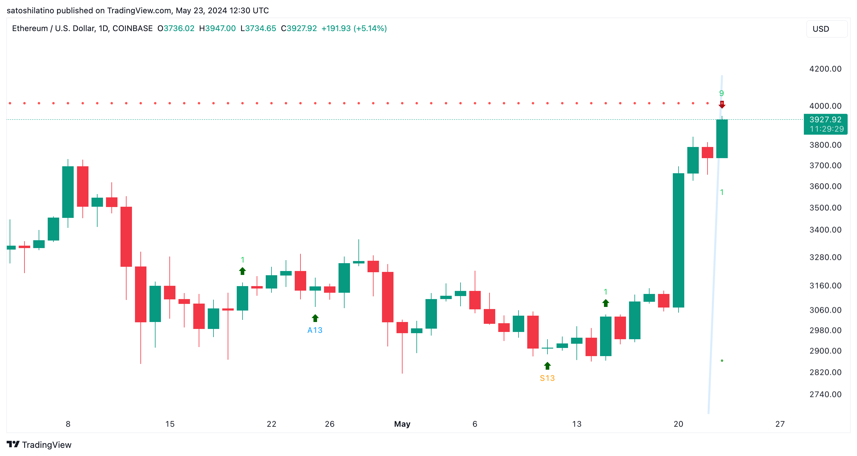 Se Ethereum supererà questo ostacolo e stamperà una chiusura giornaliera sopra i 4.170$, le prospettive ribassiste saranno invalidate. Ciò potrebbe portare a una nuova fase di conto alla rovescia verso i 5.000$.