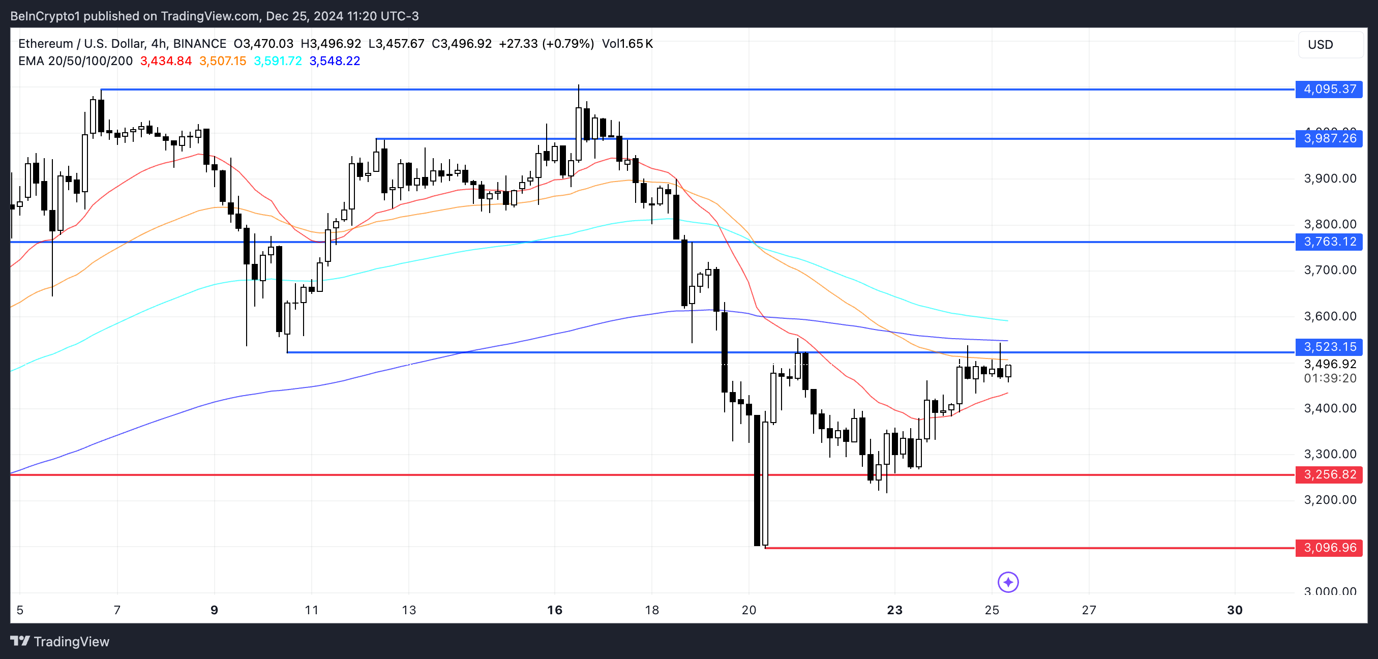 La resistenza di Ethereum a 3.523 USD è un livello critico per i suoi movimenti di prezzo a breve termine. Se questa resistenza viene superata, ETH potrebbe testare i 3.763 USD successivi.
