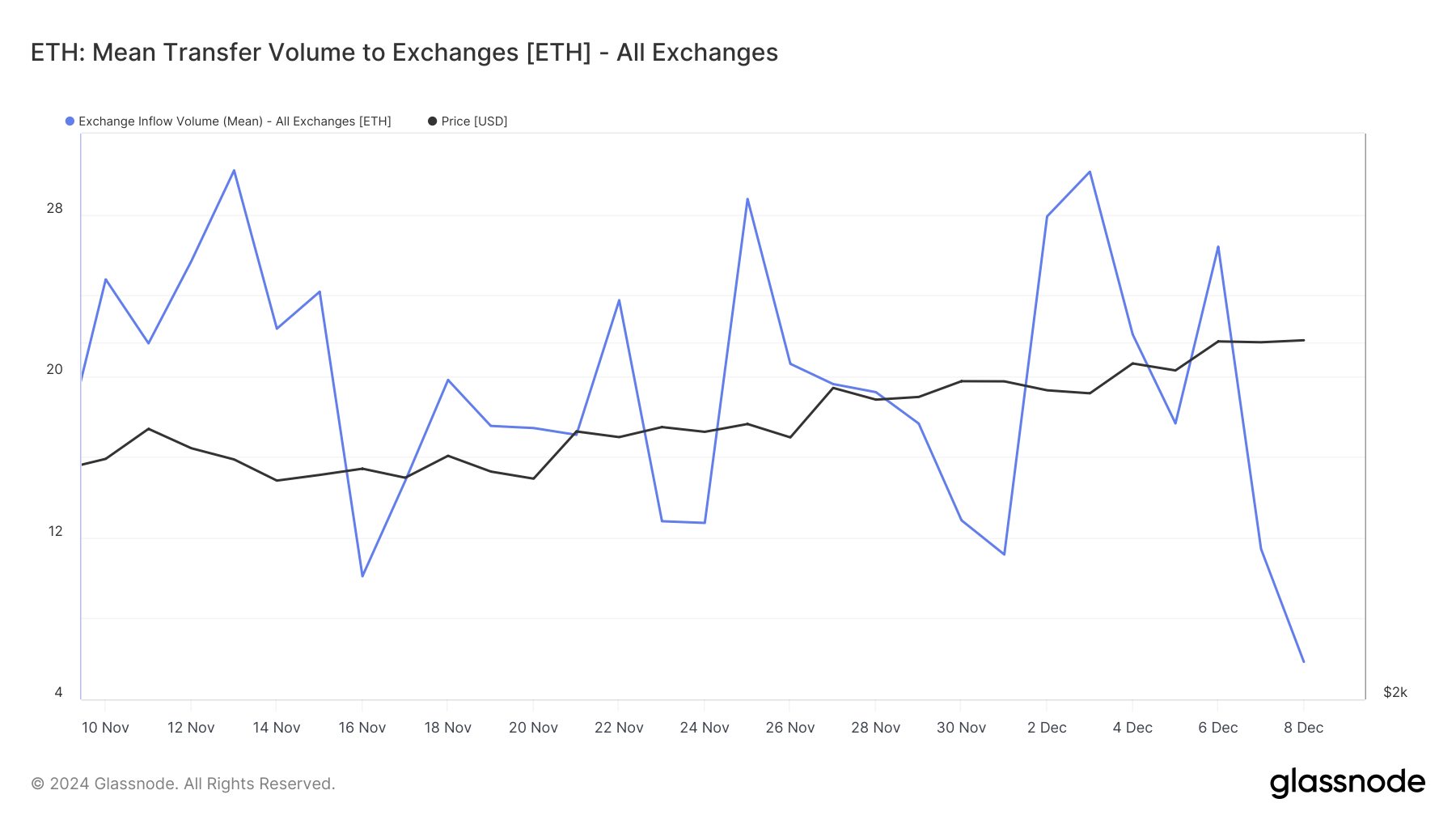 Oltre a ciò, i dati di Glassnode hanno mostrato che il volume di afflusso di Ethereum sugli exchange è sceso al livello più basso in oltre un mese. Quando l’afflusso sugli exchange aumenta, significa che i detentori sono disposti a vendere.