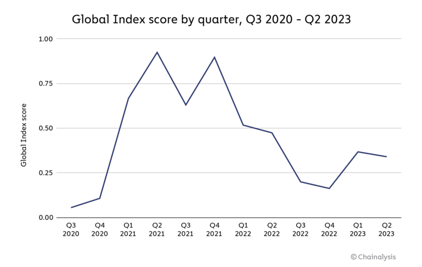 Tuttavia, verso la fine del 2022, l’adozione globale ha subito un notevole calo, come indicato dai dati di Chainalysis.